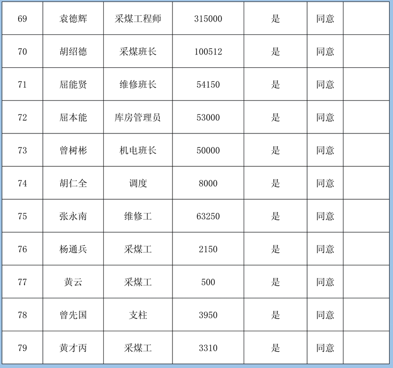 3、其他情況:大灣子煤礦因前后法人更換頻繁,各個(gè)時(shí)期的財(cái)務(wù)管理混亂,無用工合同,無財(cái)務(wù)支付工資清單,欠薪依據(jù)均為各工隊(duì)當(dāng)時(shí)的欠薪統(tǒng)計(jì)表、工資花名冊(cè),或各個(gè)時(shí)期的管理自己相互證明,無切實(shí)的欠薪依據(jù)。