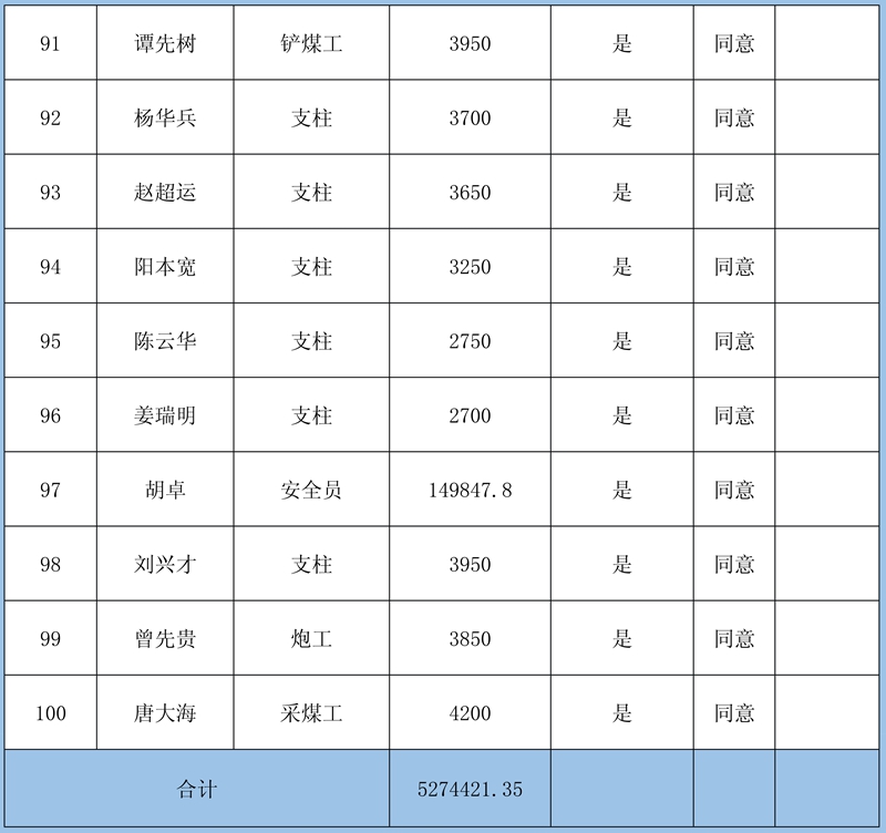 2、本次確認(rèn)情況:經(jīng)初核確認(rèn),累計(jì)共收到41條欠薪證據(jù),涉及41人2539579元;勞資雙方已簽字蓋章確認(rèn)30條欠薪證據(jù),涉及30人360444元;煤礦方未簽字確認(rèn)11條欠薪證據(jù),涉及11人2179135元。