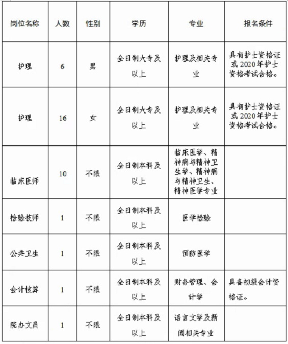 大理州第二人民醫(yī)院始建于1978年,是一所集精神衛(wèi)生預(yù)防、治療、科研、教學(xué)為一體的三級甲等精神病?漆t(yī)院。為滿足醫(yī)院業(yè)務(wù)發(fā)展的需要,現(xiàn)面向社會公開招聘編制外專業(yè)技術(shù)人員36名,有關(guān)事宜公告如下: