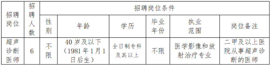為使醫(yī)院人力資源配置適應醫(yī)院業(yè)務發(fā)展需求,保障醫(yī)療安全,提高服務質(zhì)量,滿足廣大人民群眾日益增長的醫(yī)療衛(wèi)生需求,我院決定招聘超聲醫(yī)學科編制外工作人員,具體事項如下: