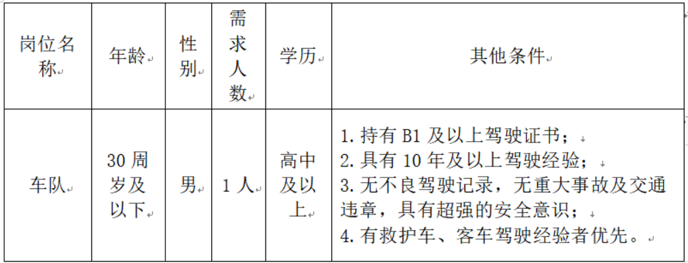 因工作需要,根據(jù)科室用人計劃,經(jīng)醫(yī)院研究決定,計劃招聘車隊駕駛人員1名,現(xiàn)將有關招聘事宜公告如下。