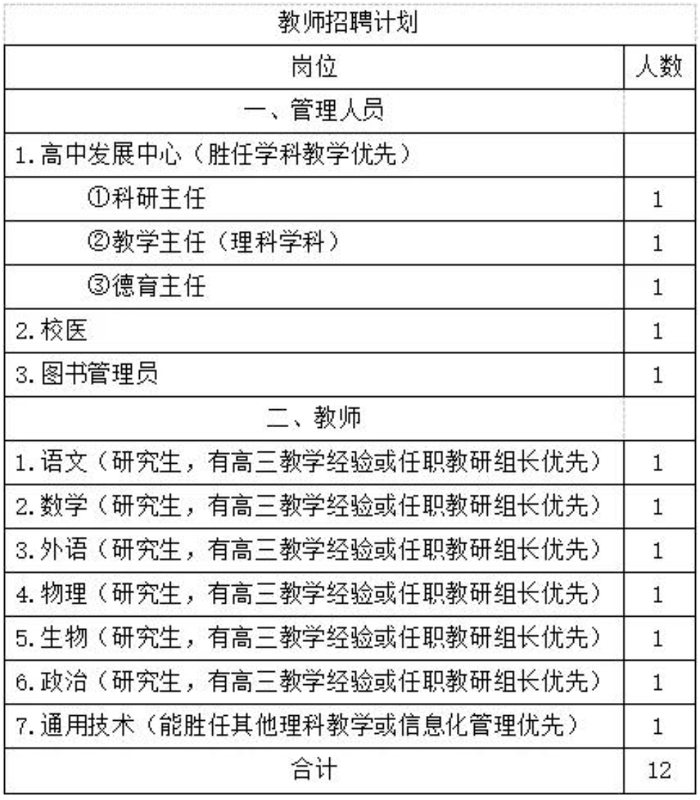 應(yīng)聘教師應(yīng)有高尚的師德,身體健康,具有相關(guān)從業(yè)資格證及研究生學(xué)歷,有經(jīng)驗的教師優(yōu)先。