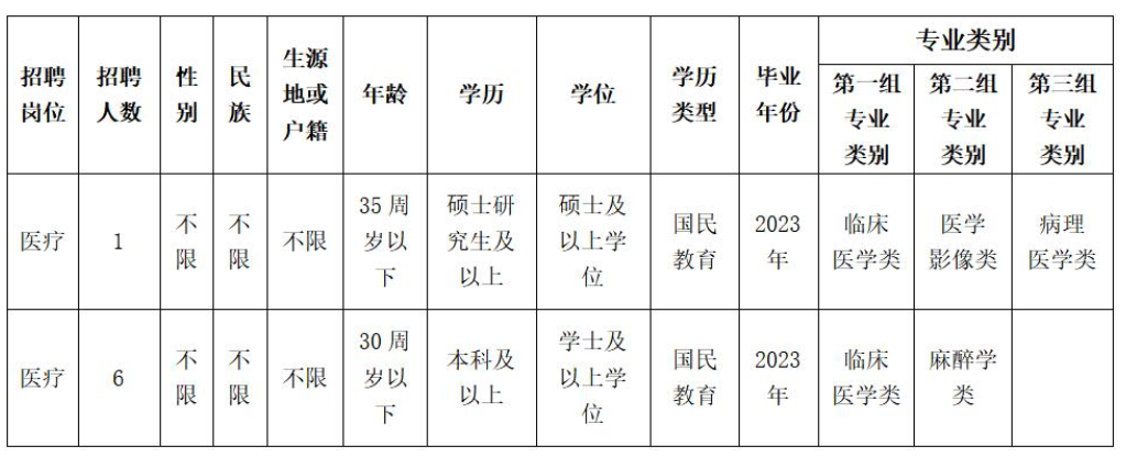 高等院校醫(yī)學(xué)類本科及以上學(xué)歷畢業(yè)后直接參加國家計(jì)劃內(nèi)住院醫(yī)師規(guī)范化培訓(xùn),2023年國家住院醫(yī)師規(guī)范化培訓(xùn)合格且具有國家執(zhí)業(yè)醫(yī)師資格,參加醫(yī)療衛(wèi)生行業(yè)招聘醫(yī)學(xué)類崗位的,視為2023年度應(yīng)屆畢業(yè)生(資格復(fù)審時(shí)須提供成績單、合格證明,否則取消聘用資格)。