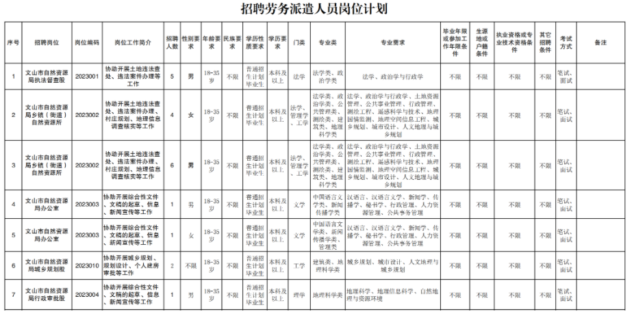 根據(jù)工作需要,文山市自然資源局委托文山州財信人力資源有限公司面向社會公開招聘勞務(wù)派遣工作人員20名,F(xiàn)將有關(guān)事項公告如下: