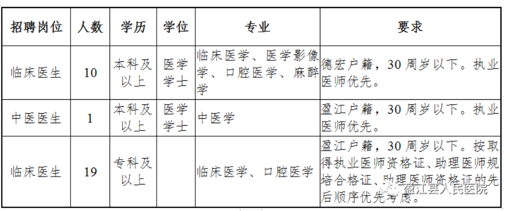 德宏州盈江縣人民醫(yī)院招聘編外合同制衛(wèi)生專業(yè)技術人員第一次公告