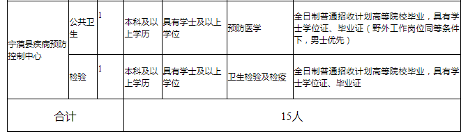 為進一步充實和優(yōu)化寧蒗縣醫(yī)療衛(wèi)生人才隊伍,經(jīng)縣人民政府同意,寧蒗縣人民醫(yī)院、縣中醫(yī)院、寧蒗縣疾病預(yù)防控制中心、寧蒗縣婦幼保健計劃生育服務(wù)中心、根據(jù)《事業(yè)單位公開招聘人員暫行規(guī)定》(人事部令第6號)、《云南省事業(yè)單位公開招聘工作人員辦法》(云人社發(fā)[2016]182號)和《關(guān)于進一步規(guī)范麗江市事業(yè)單位緊缺急需工作人員招聘的通知》(麗人社事〔2019〕66號)規(guī)定,4個單位面向醫(yī)學(xué)院校畢業(yè)生公開招聘緊缺急需醫(yī)療衛(wèi)生專業(yè)技術(shù)人員15名,現(xiàn)將相關(guān)事宜公告如下: